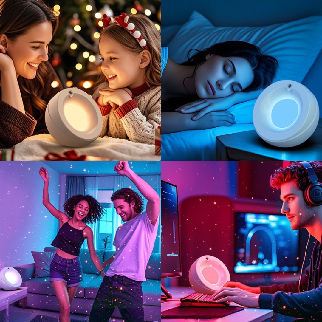 • 4 modes in one device - RGB ambiance, warm sleep light, star projection, brightness control