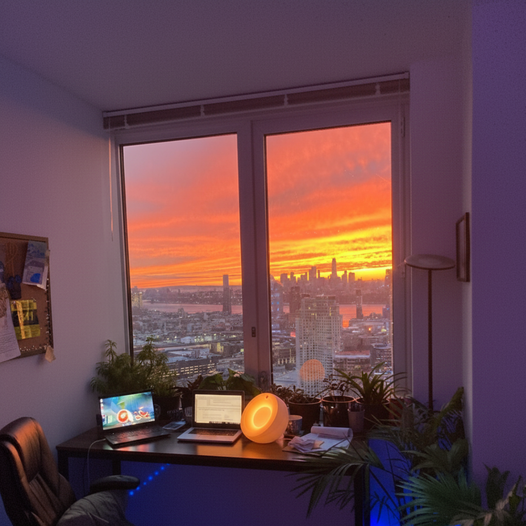Living alone in a small place, I’m always trying to make it cozy without spending a ton. This light makes such a difference. I put on lo-fi and let it run while I work or wind down. It’s the little things.