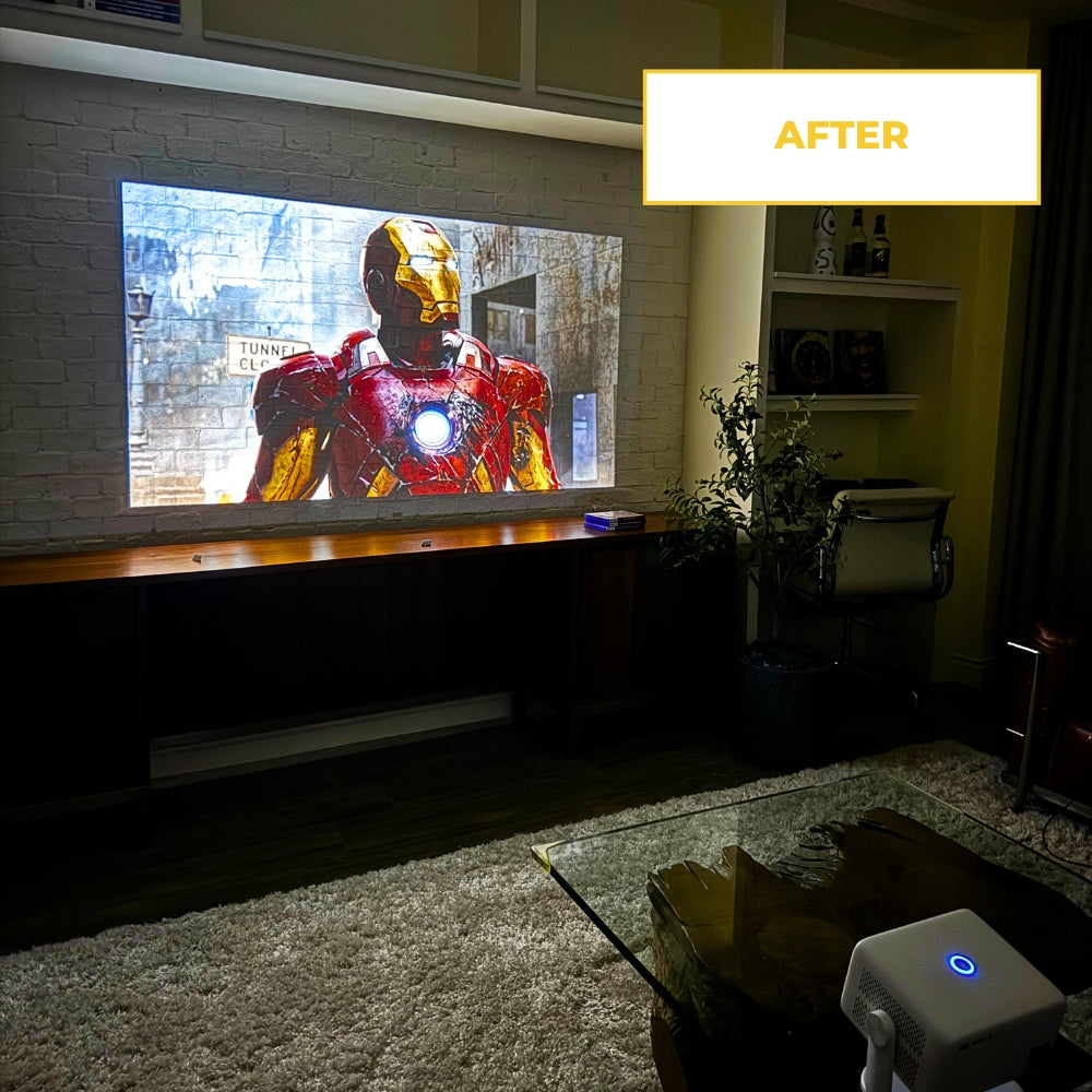 Discover the extraordinary enhancement in your entertainment setup—before and after the Vision Beam Pro™ 2 revolutionizes your viewing experience.